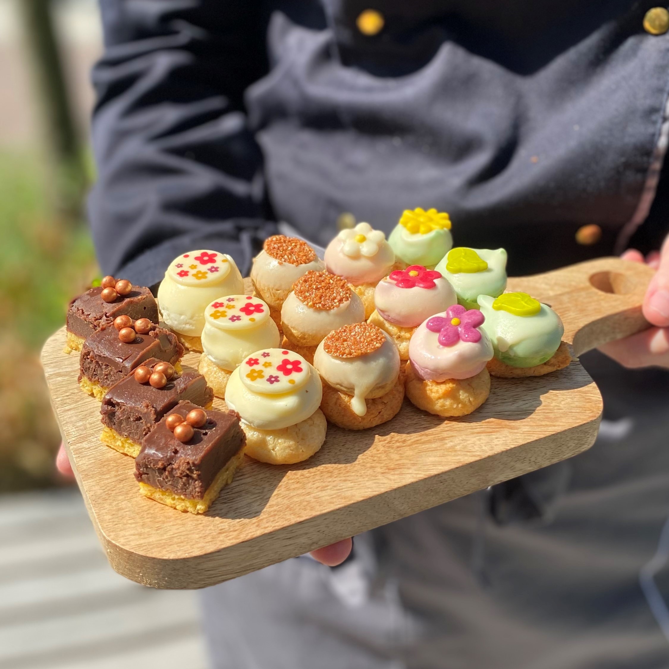 Een doosje met 15 stuks luxe opgemaakte koekjes. Versier je paastafel met onze petit glacee, maak een gezellige high tea of geniet ervan tijdens de koffie
